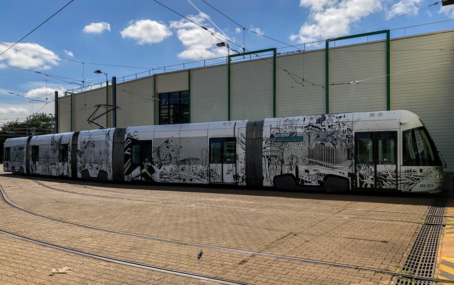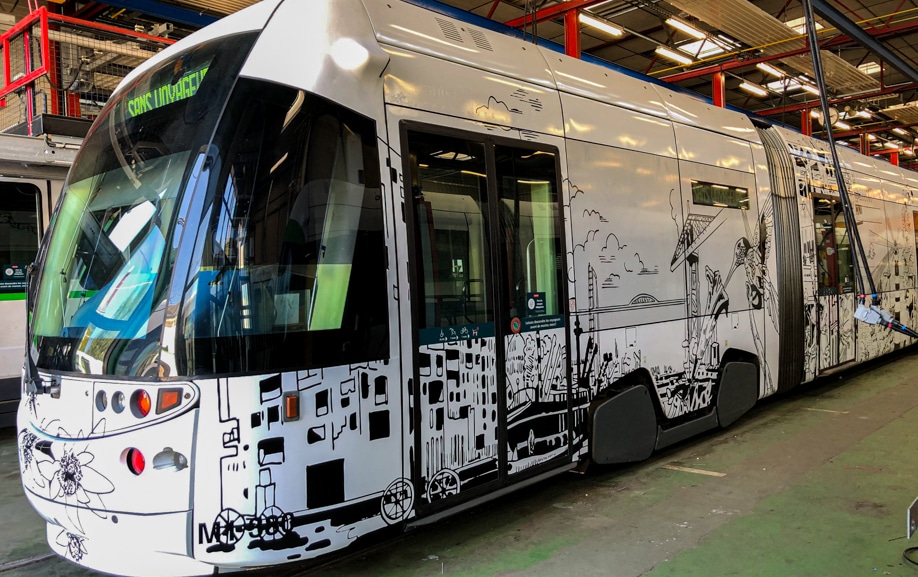 Cette intervention illustre le tramway comme support culturel et identitaire, transformant le véhicule en véritable œuvre mobile au cœur de l’espace public.