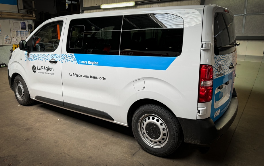 Habillage de flotte de minibus régionaux – Transports de l’Ain
