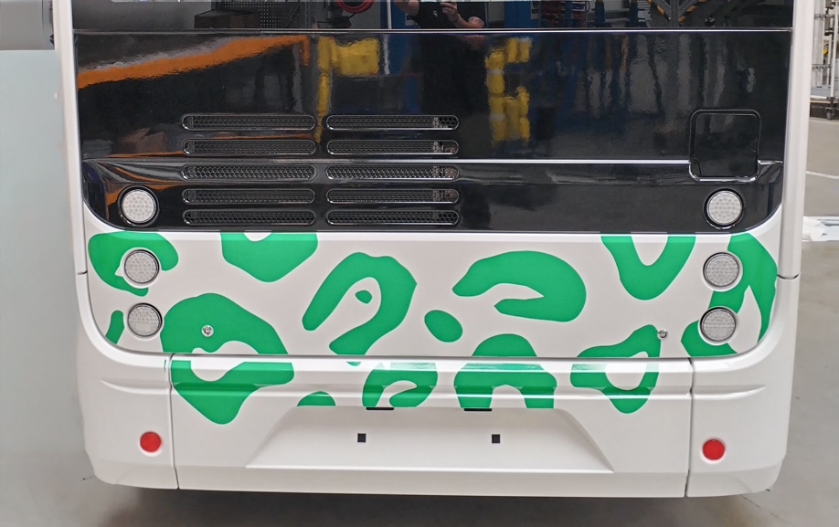 Adaptation du motif aux formes spécifiques de la carrosserie du Bluebus 6 m