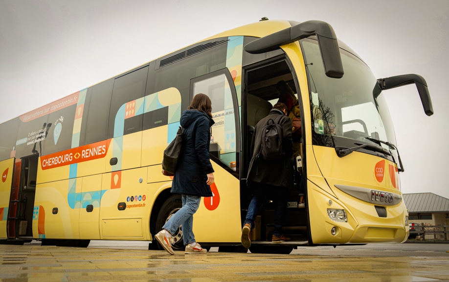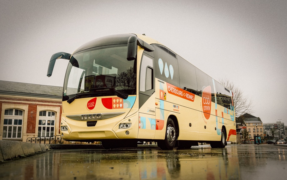 Dans le cadre de l’exploitation de la ligne interurbaine Cherbourg – Rennes, Cotentin Communauté d’Agglomération, via le réseau CAP Cotentin, a confié à Graphibus l’adaptation et la mise en œuvre de la livrée interurbaine autocar dédiée à cette liaison.