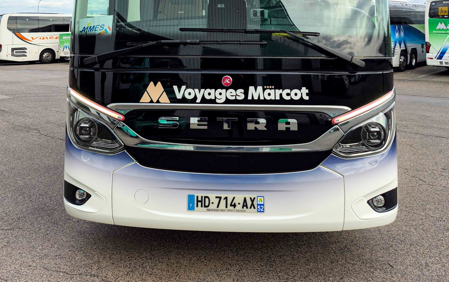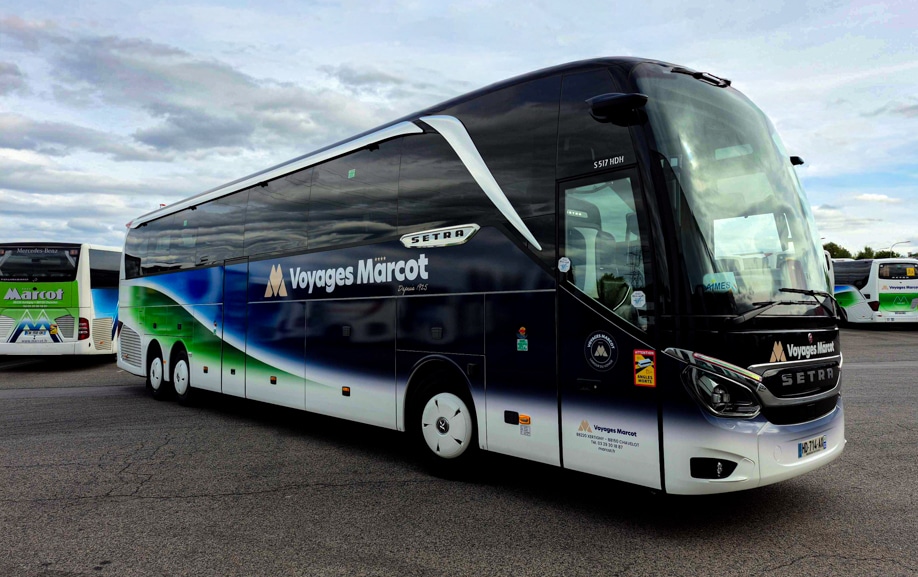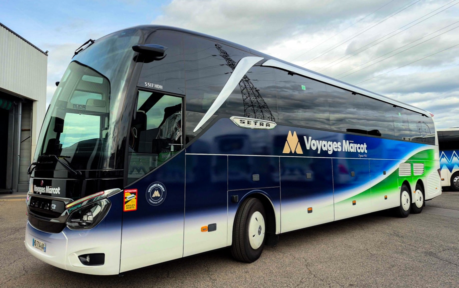 Graphibus a réalisé la personnalisation d’un autocar Setra S 515 HD pour MARCOT Voyages.