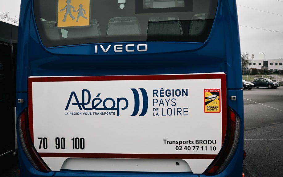 Dans le cadre de l’exploitation de lignes Aléop – Région Pays de la Loire, Transports BRODU devait équiper un semi-covering autocar avec la livrée réseau, tout en conservant une partie de la teinte d’origine du véhicule.